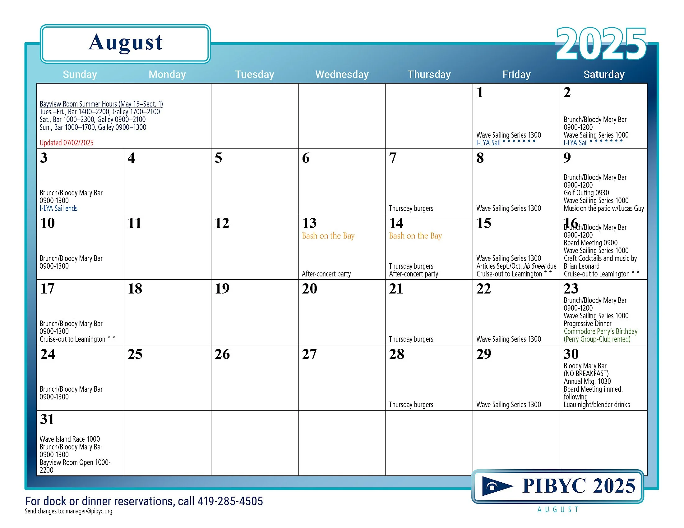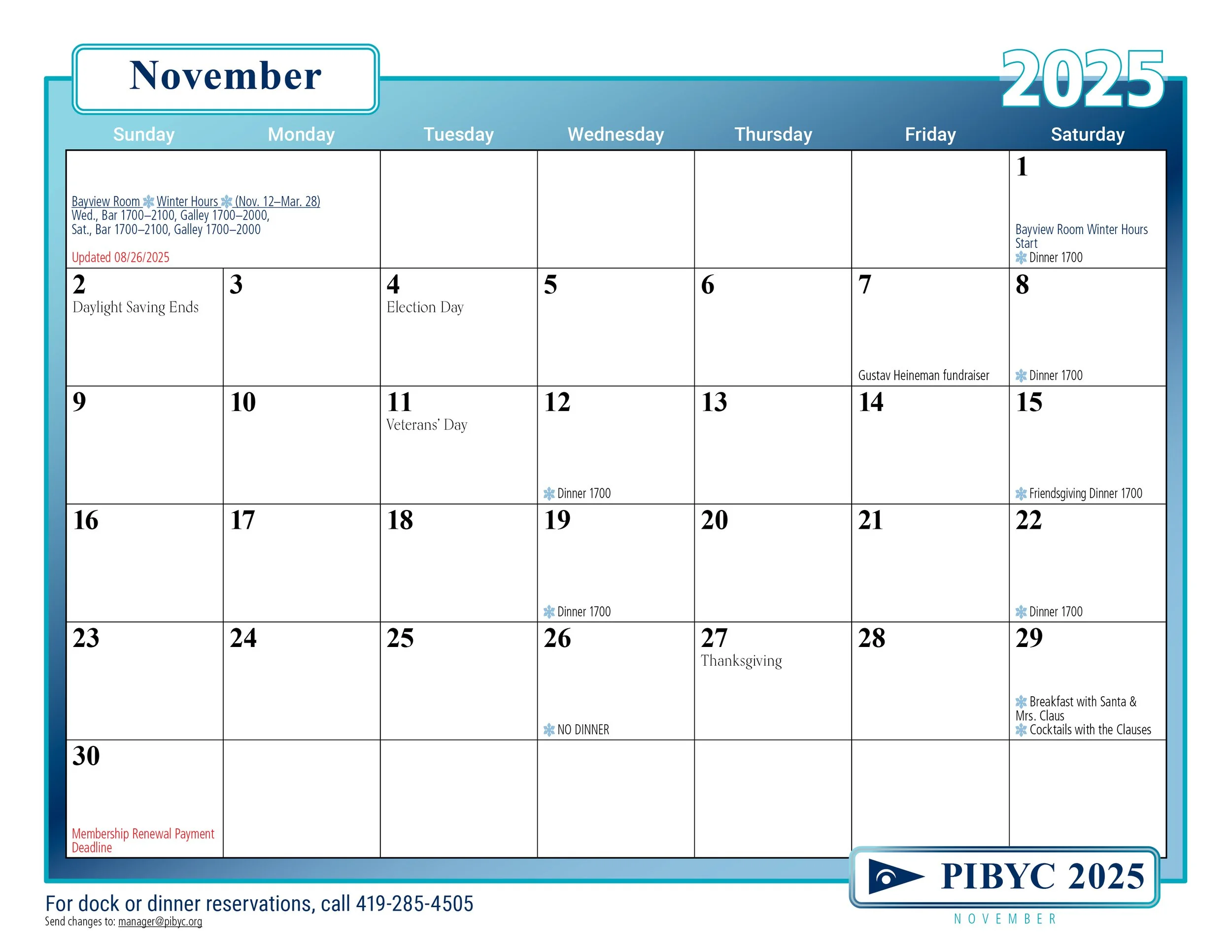 PIBYC 2025 Calendar